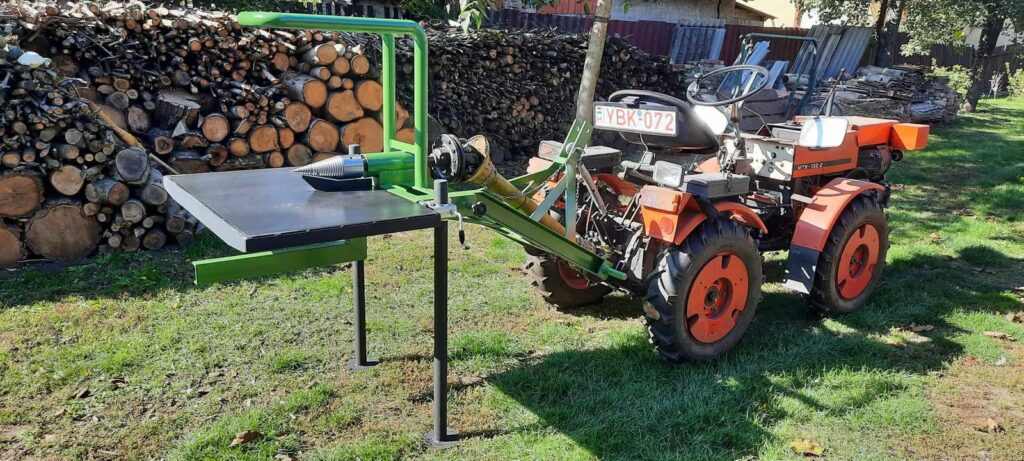 Néhány éve vásárolta ügyfelünk a traktorhajtású hasítókúp szettünket egy 18 lóerős MT8 132.2 traktorhoz és egy jól átgondolt, igazán ügyes gépet épített. Most megosztjuk a vevőnk által küldött fotókat, videókat.