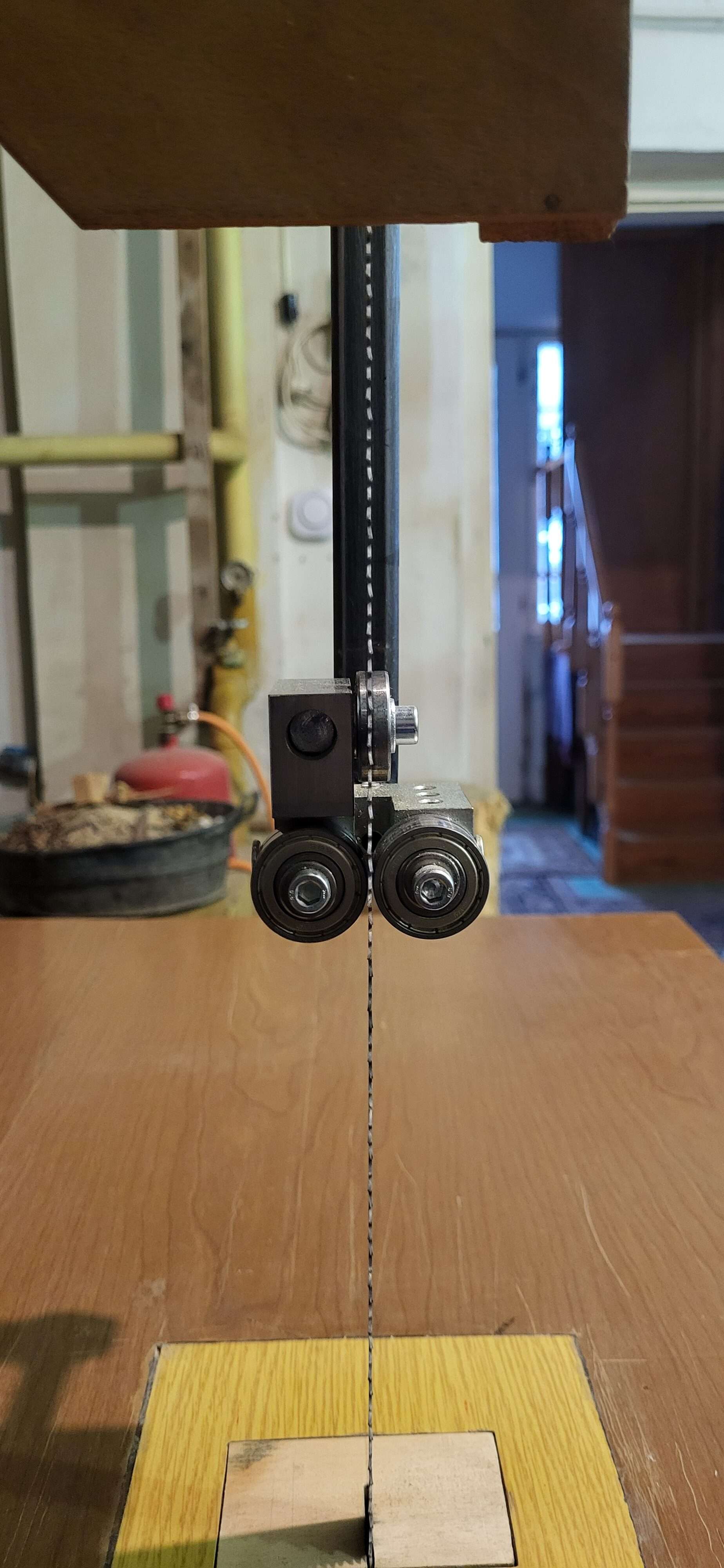 Vásárlónk egy favázas, 500-as, favázas szalagfűrészt újított fel, amire ez 5×5-ös lapvezetőinket szerelte fel.