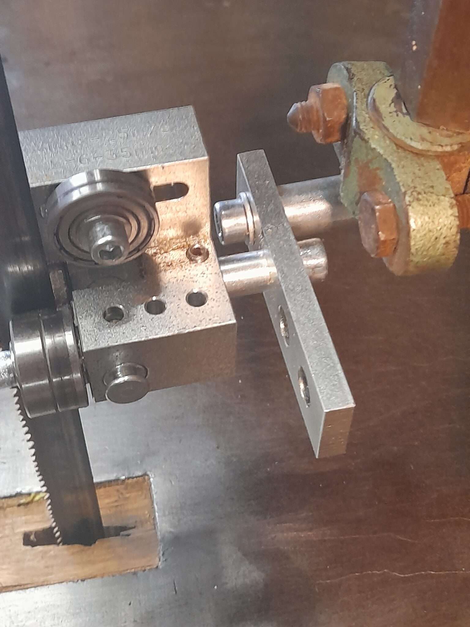 Vásárlónk régóta küzdött a saját elmondása szerint is retró szalagfűrészgépének gyári lapvezetőjével, ami igazán sosem volt jó. Ismerőse ajánlására keresett meg minket. Néhány levélváltásban megküldött képek alapján az 5×5-ös lapvezetőnkre esett a választás és az excenteres tartókonzolra. A tartókonzol a gyári konzol helyére mindenféle átalakítás nélkül passzolt, így az új lapvezetőnek köszönhetően a fűrészgép gyakorlatilag pillanatok alatt üzemkész állapotban volt ismét.