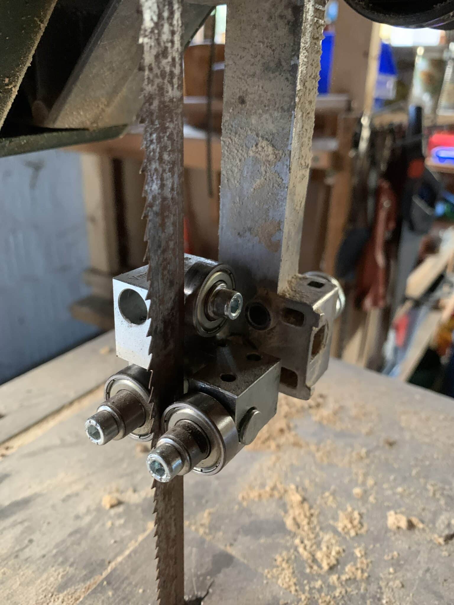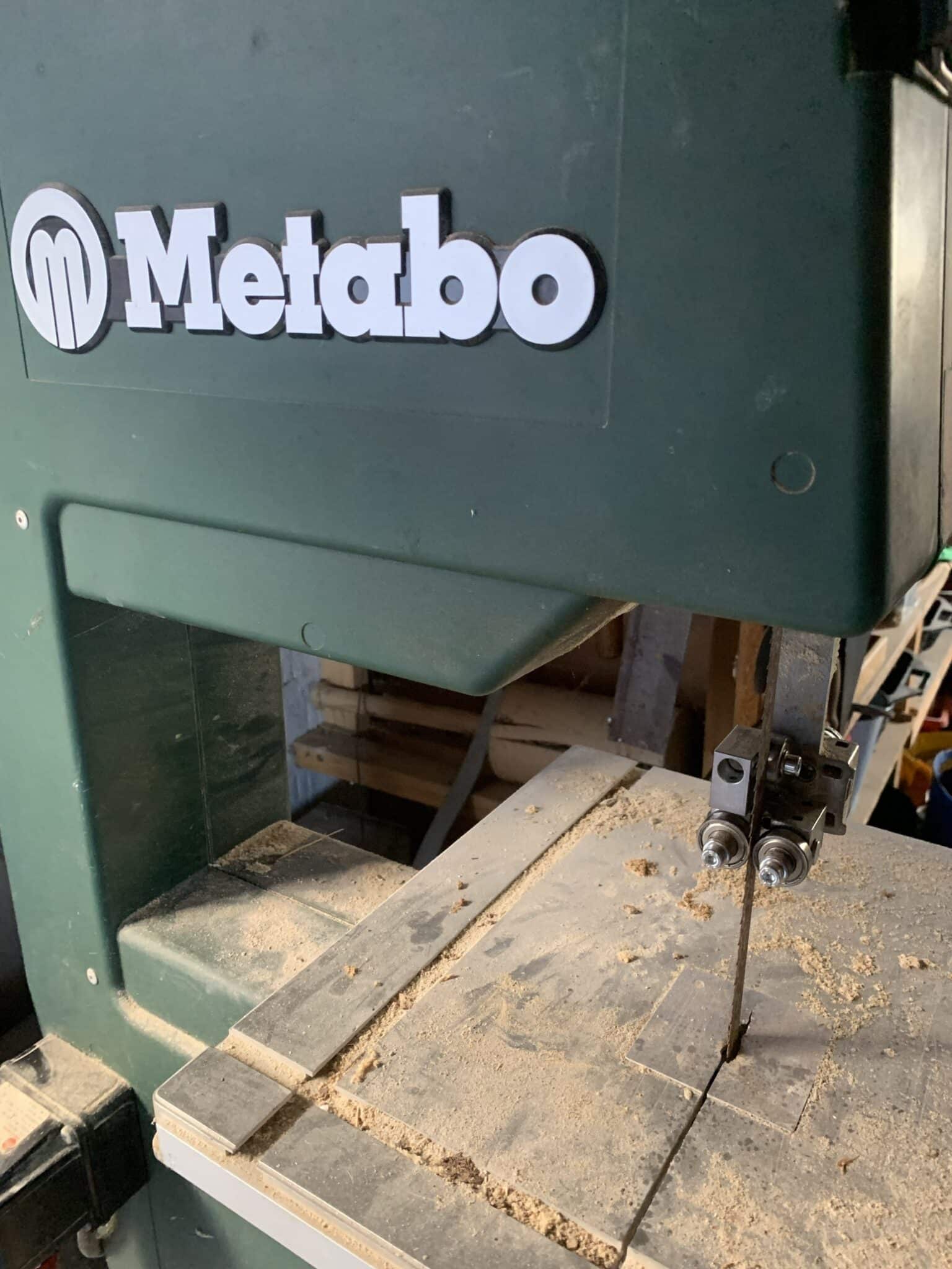 Vásárlónk a Metabo BAS 0633B típusú szalagfűrészére szerelte fel a 4×4-es lapvezetőnket, felső lapvezetőként. Minimális munkával fel lehetett szerelni a gyári lapvezető helyére, viszont a hely szűkössége miatt az oldalsó vezetőgörgők/csapágyak egyikét le kellett szerelni és egy távtartóval helyettesíteni. Ez sem okoz problémát, mivel a gépen csak nagyon keskeny szalagok vannak használatban.