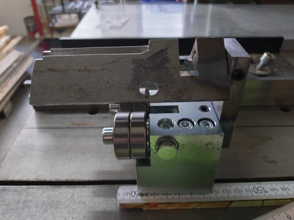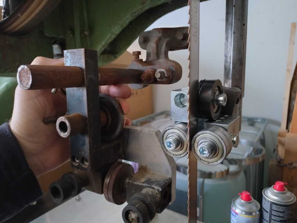Vásárlónk egyedi fatárgyakat gyárt. Az üzemében egy öreg, 800 mm kerékátmérőjű PEHAKA szalagfűrész lapvezetőit cserélte a 6×6-os lapvezetőinkre. Mind a felső, mind pedig az alsó, asztal alatti lapvezetőhöz is új konzolt kellett készítenie. Az alsó lapvezető konzolja még egy fűrészporterelő feltétet/tetőt is kapott. Ilyen az, amikor az asztalosnak a lakatosmunkához is értenie kell. 🙂