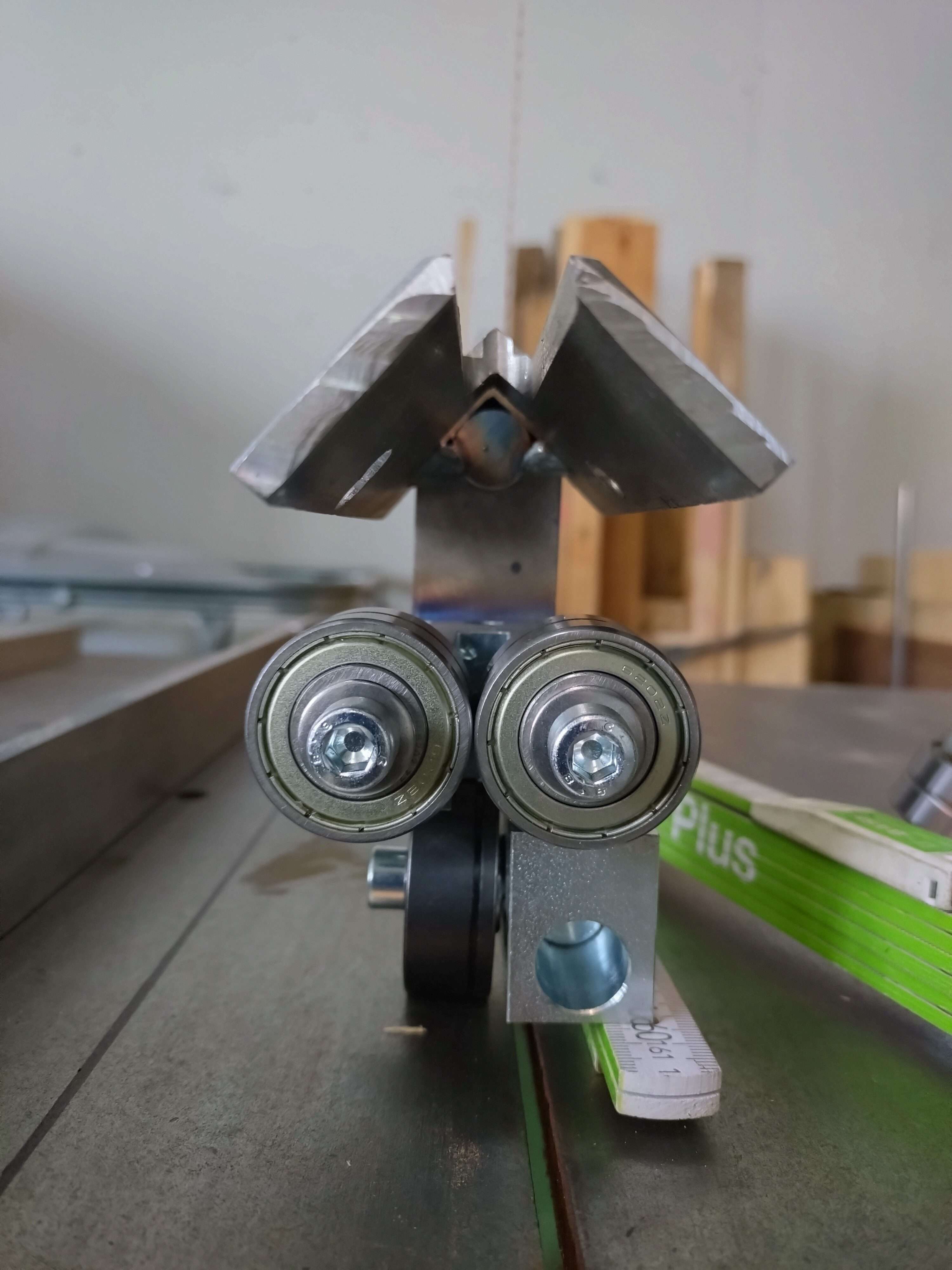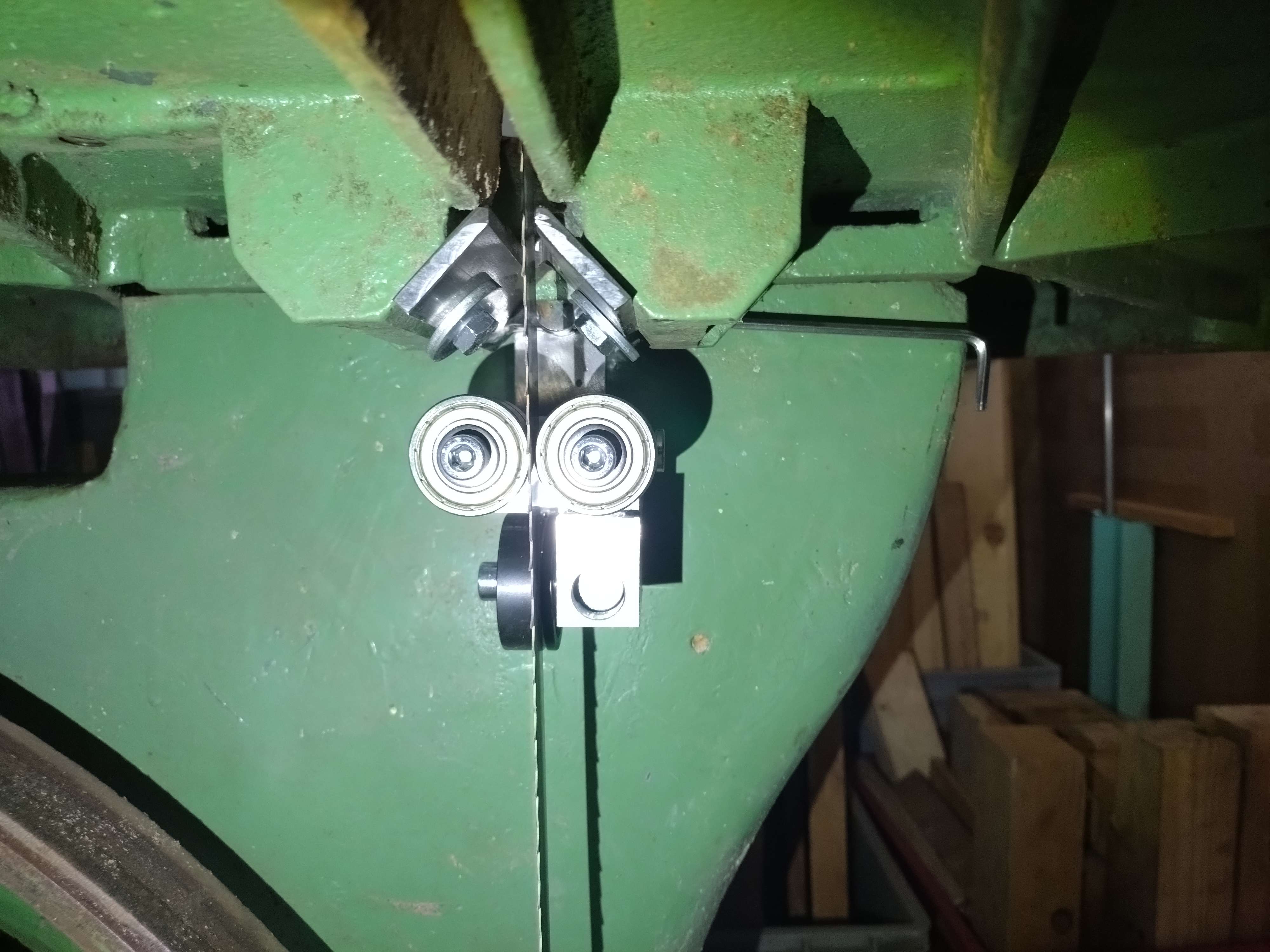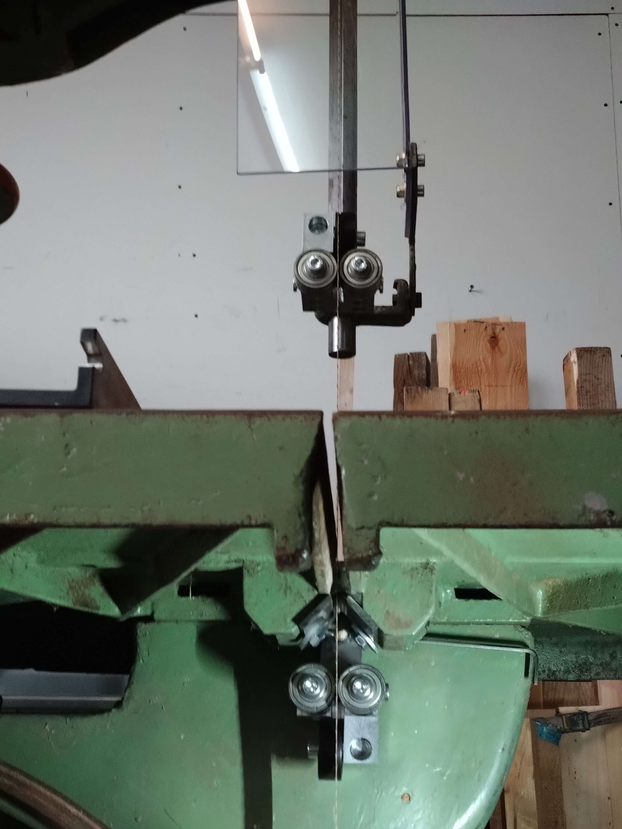 Vásárlónk egyedi fatárgyakat gyárt. Az üzemében egy öreg, 800 mm kerékátmérőjű PEHAKA szalagfűrész lapvezetőit cserélte a 6×6-os lapvezetőinkre. Mind a felső, mind pedig az alsó, asztal alatti lapvezetőhöz is új konzolt kellett készítenie. Az alsó lapvezető konzolja még egy fűrészporterelő feltétet/tetőt is kapott. Ilyen az, amikor az asztalosnak a lakatosmunkához is értenie kell. 🙂