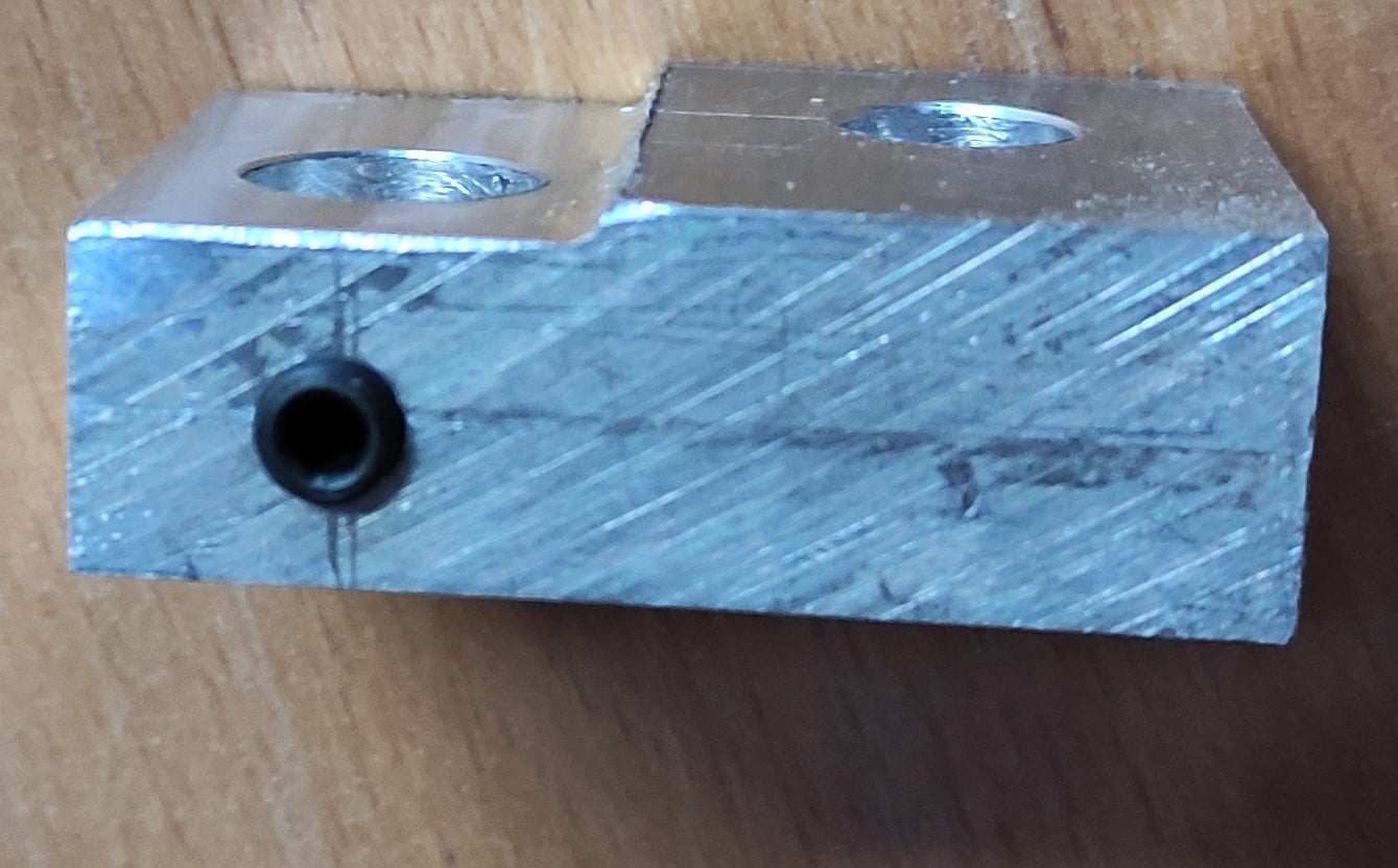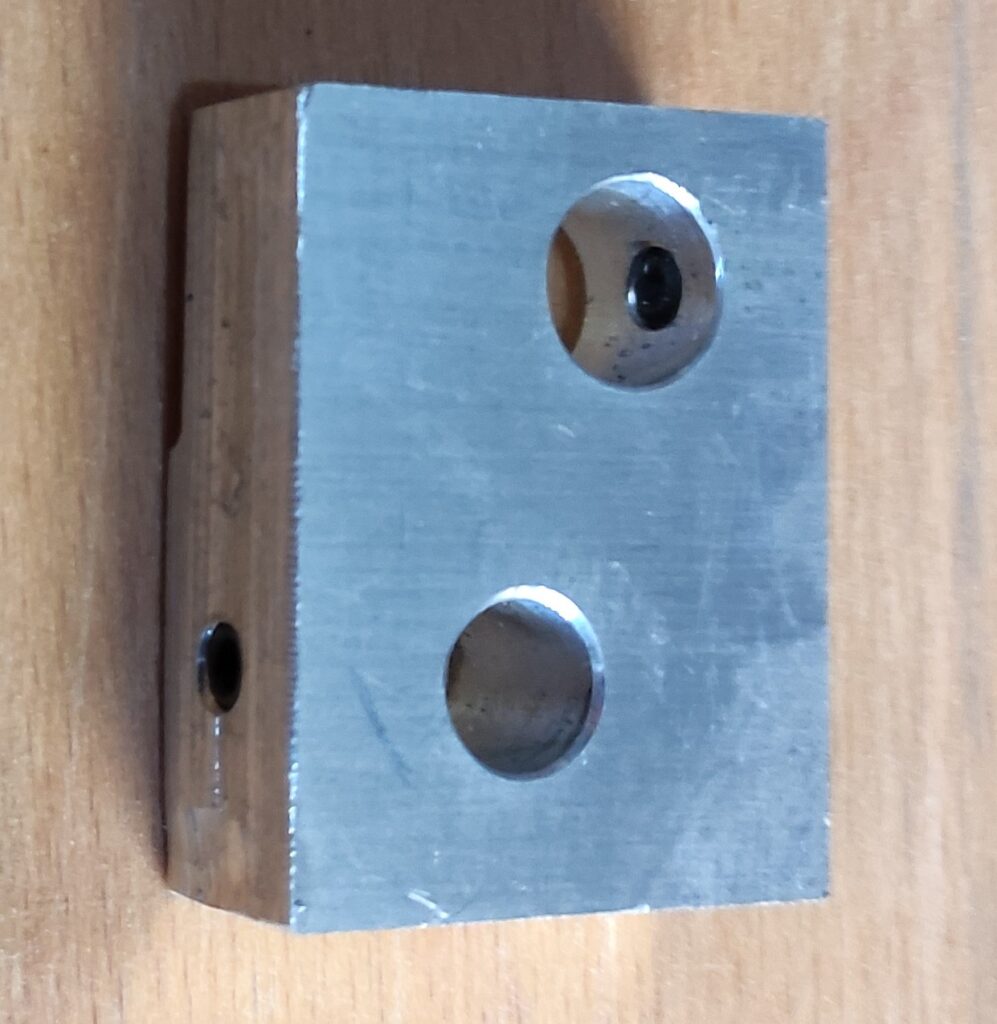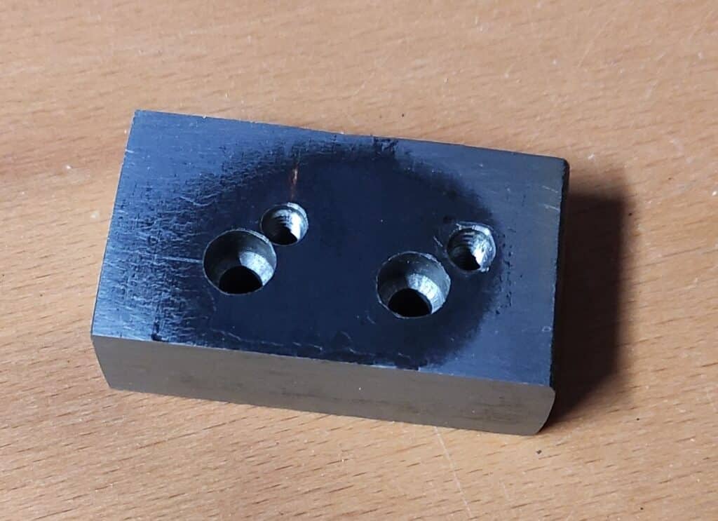 A 12 mm-es furat az eredeti excentrikus tengelynek szolgál, amelyet elöl le kell rövidíteni / vágni. Az alsó 10 mm-es furat az új vezetővel való kapcsolódásra szolgál. Oldalt egy-egy 5 mm-es furatot és M6 menetet kell vágni.