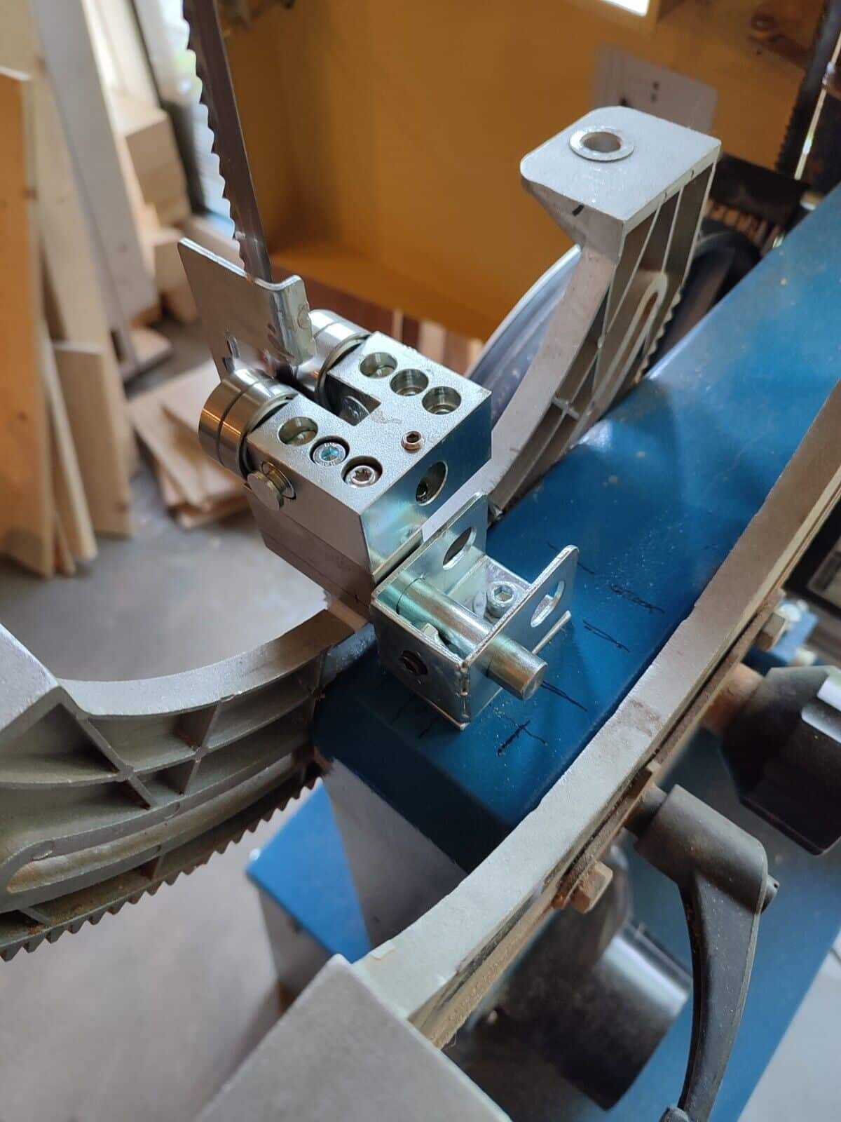 Ismét néhány fotó egy kedves vásárlónktól. Egy Scheppach BASATO 4 típusú szalagfűrészre kerültek fel az 5×5-ös lapvezetőink. Mind alsó, mind pedig a felső gyári lapvezető le lett cserélve. Ezen a gépen az átépítéshez fel lehet használni a gyári tartókonzolokat, így nem jár túl sok munkával az átépítés. Az eredmény viszont meggyőző, a vágásminőség szinteket javul!
