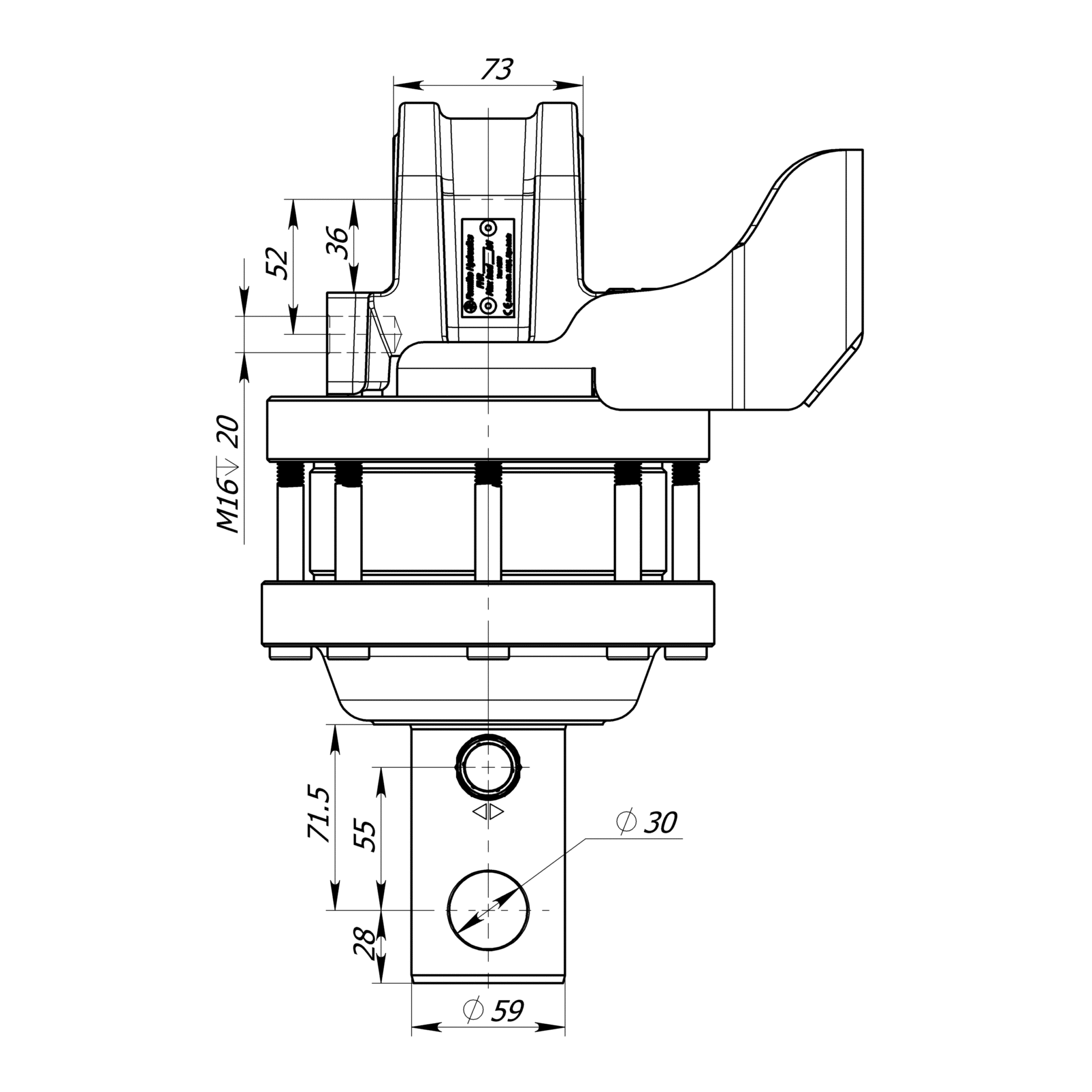 Furat: D=59 mm-es furat 60 mm mélységgel, keresztfurat D=30 mm (4,5 tonnás rotátor)