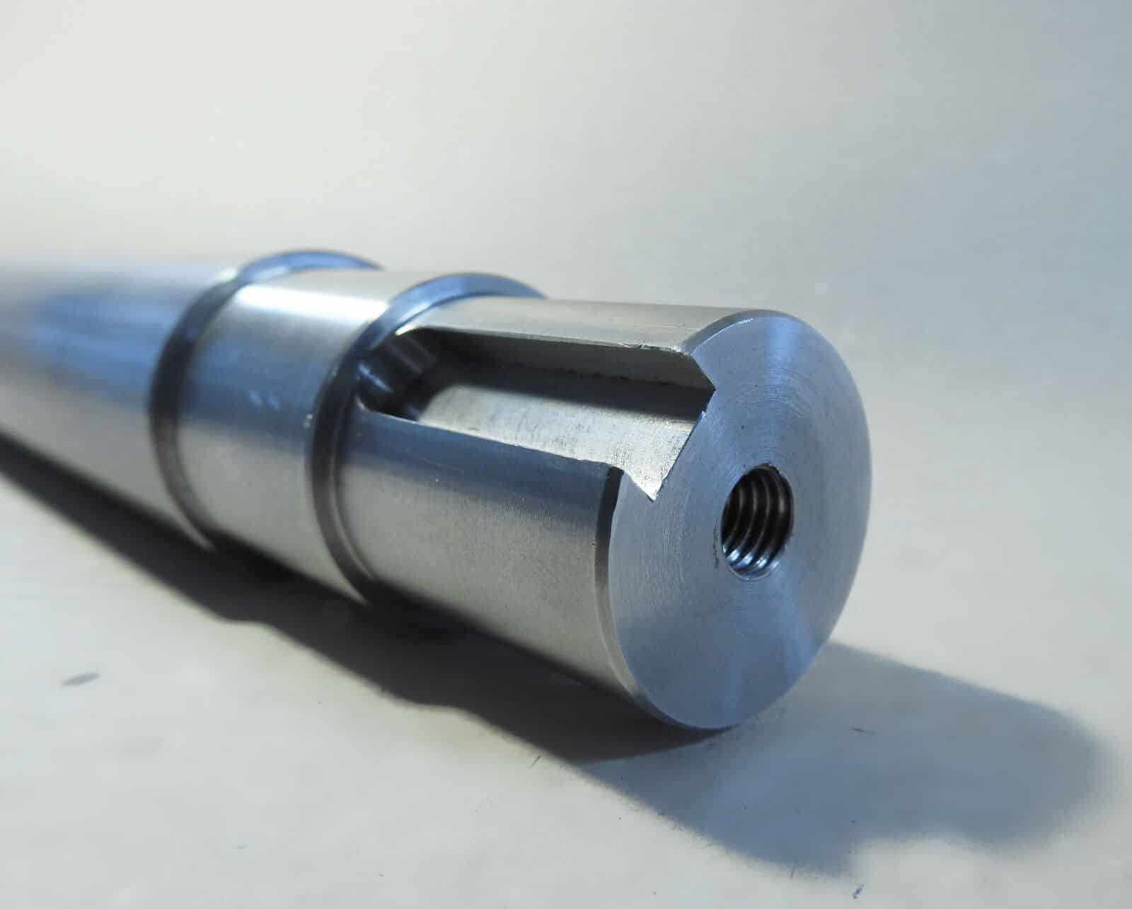 A tengely egyik végére a hasítókúp kerül, a tengely másik vége szabványos, hatbordás TLT csatlakozás.