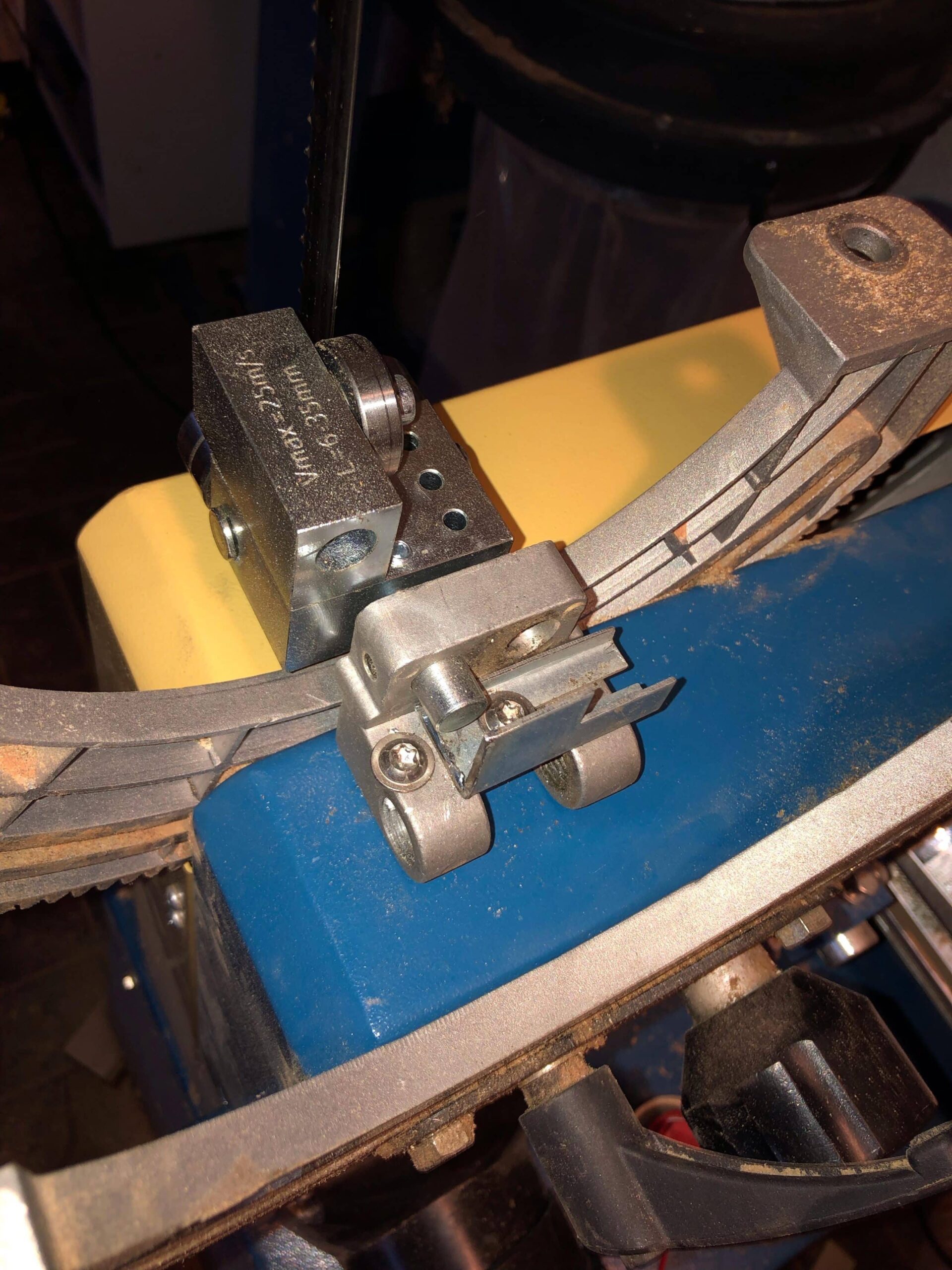 Ismét németországi vevőtől kaptunk képeket. A Scheppach BASATO4 típusú szalagfűrész gyári lapvezetőit cserélte le a mi 5×5 méretű lapvezetőnkre, részben a régi lapvezető egyes részeinek felhasználásával.